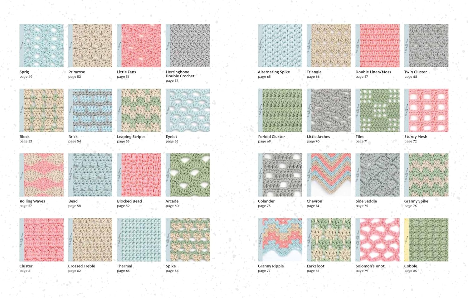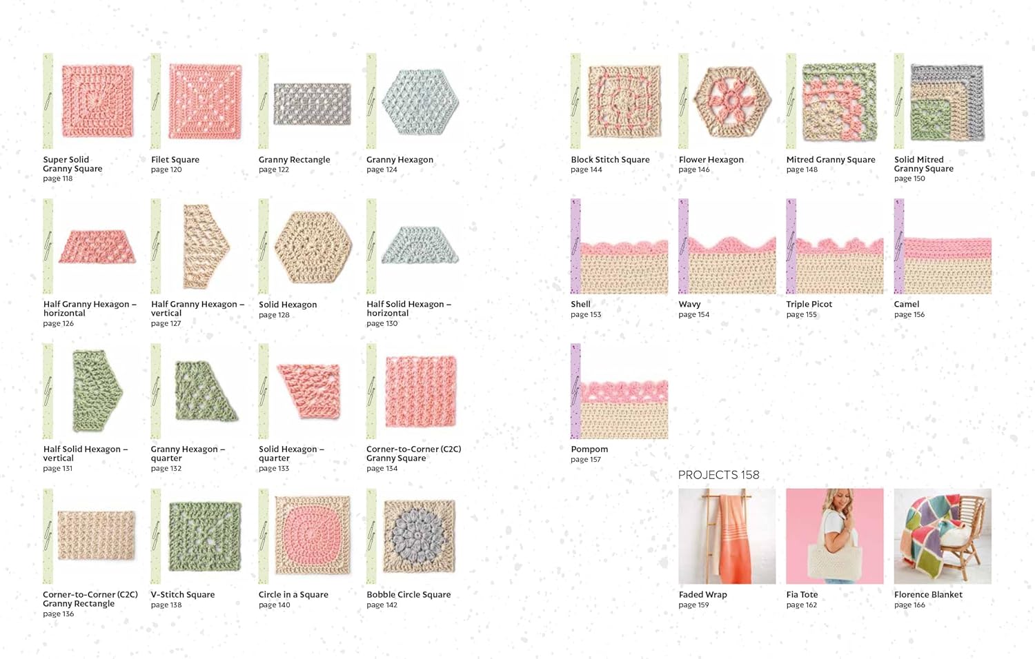 Starting with the key things you'll need to get crocheting, from advice on yarn and notions to essential techniques, Sarah-Jayne then takes you through a gorgeous collection of stitches – from simple repeat patterns to incredible textured designs. The stitches are divided into four sections – ‘basic stitches’, ‘simple stitch combinations’, ‘textured stitches’ and ‘squares and shapes’ – so you can easily search for a stitch that suits your desired finish.