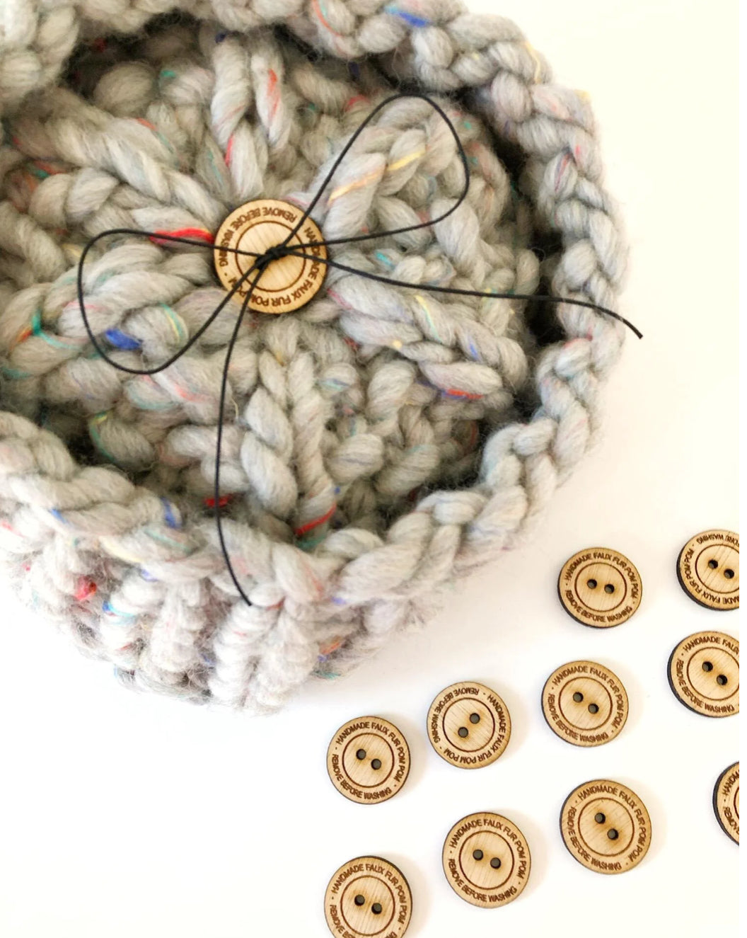 All of the pom poms come with a wooden button to allow you to secure them to your hats underneath. This makes them detachable in order to wash your hats (see photo attached)