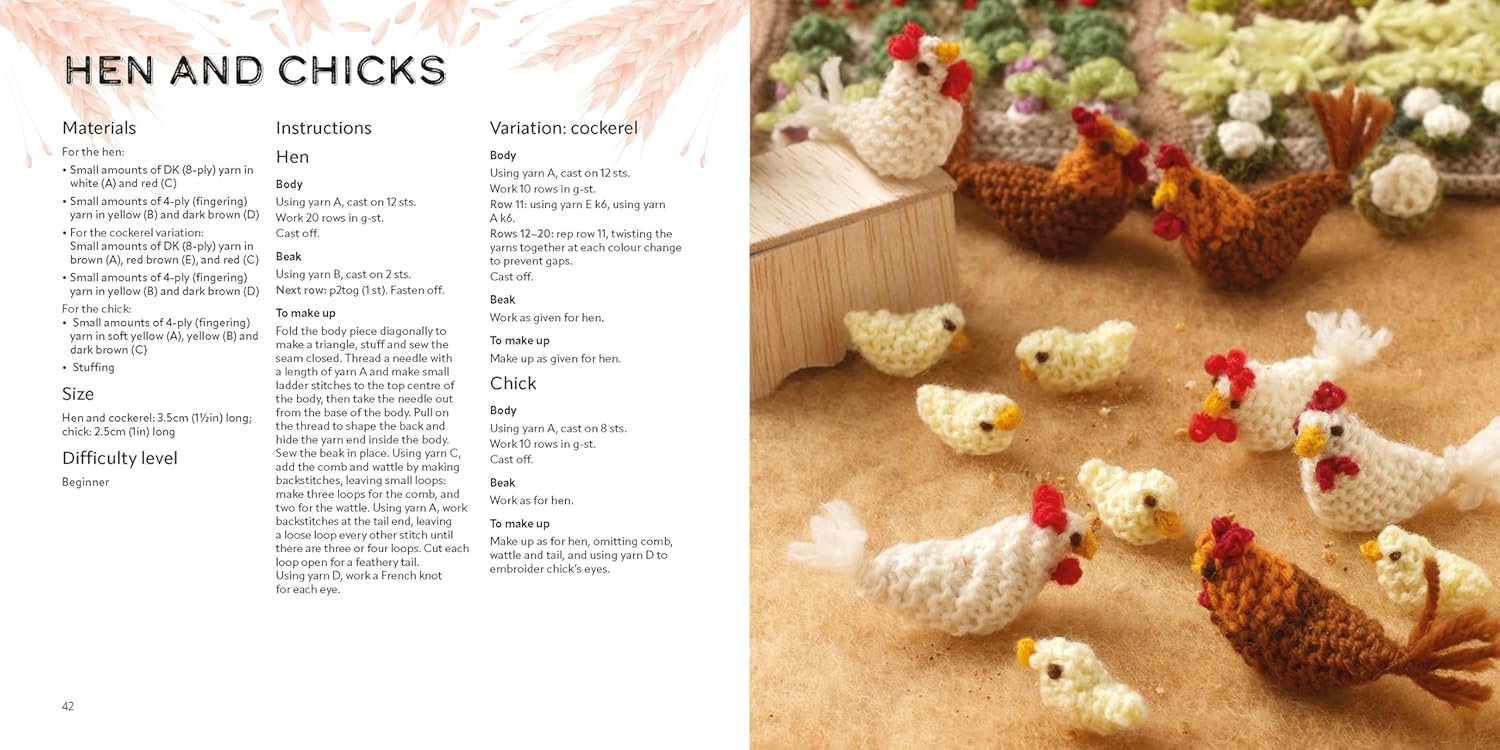 Knit 20 tiny, adorable farmyard favourites, from cheeky piglets and bustling chickens to a loyal sheepdog and your very own scarecrow.